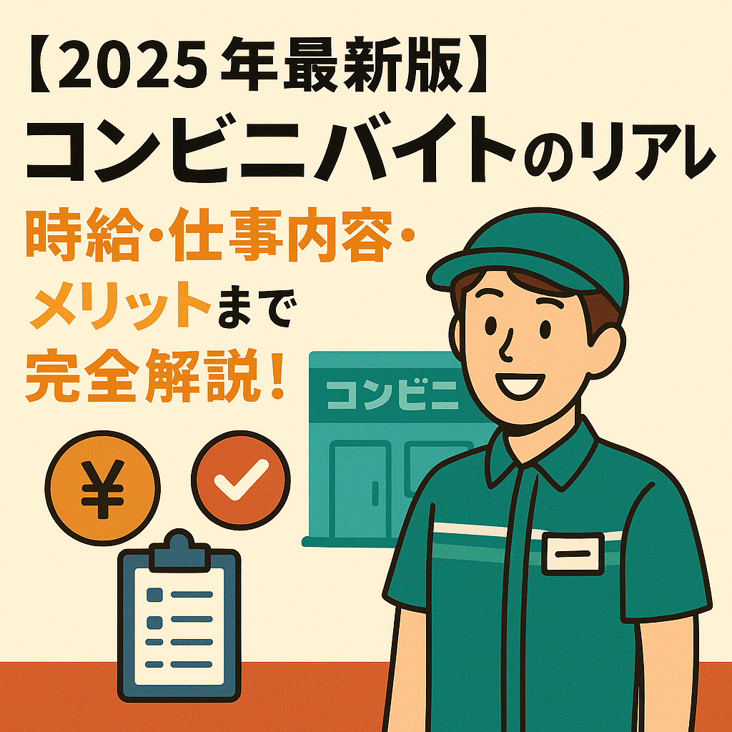 【2025年最新版】コンビニバイトのリアルを徹底解説。時給や仕事内容、メリット・デメリット、働く際の注意点まで詳しく紹介。初めてのアルバイトや副業を検討している方必見の内容です。 -