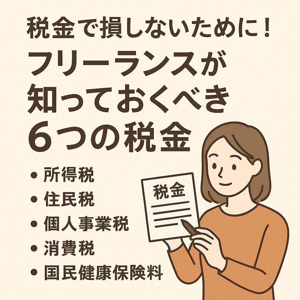 フリーランスになると、会社員時代と違って税金のすべてを自分で管理する必要があります。所得税や住民税だけでなく、個人事業税や国民健康保険料など、知らないと「思ったより税金が高い!」と損してしまうことも。本記事では、フリーランスが必ず知っておくべき6つの税金と、その仕組みや注意点、賢く節税するコツまでわかりやすく解説します。 -